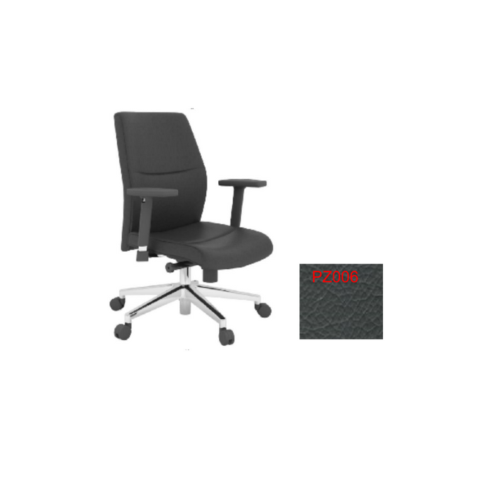 Real leather upholstered, TPU height adjustable armrest, sychronized tilting merchanism, aluminum five star bas with durable use wheels.