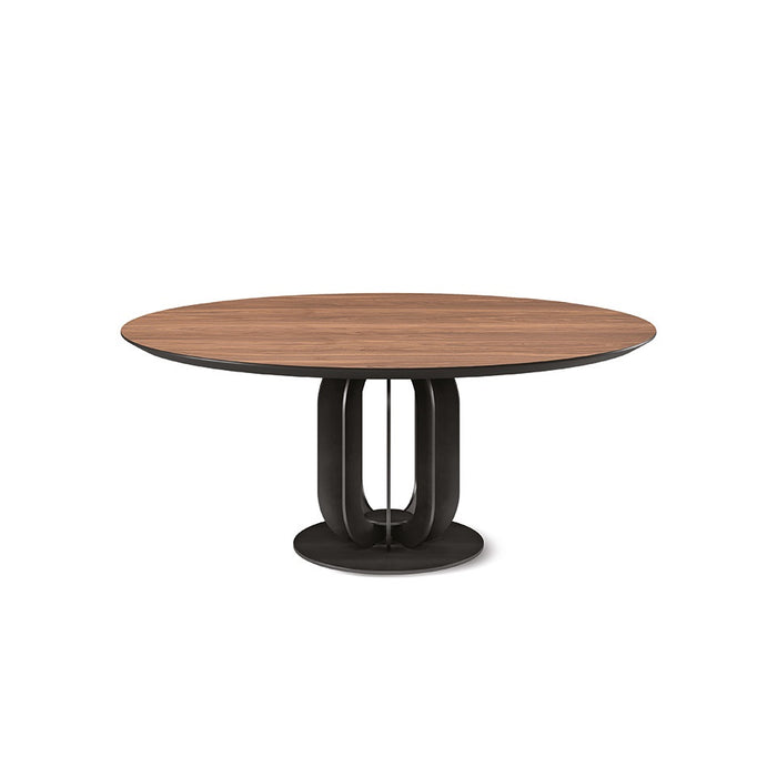 In the Soho Keramik version, the graphic and essential steel base supports a top in refined shades of Marmi ceramic. Even more refined is the Soho Keramik Premium Round model, a round ceramic table with a thick handbrushed edge in Brushed finish. Soho Wood, on the other hand, is a more sober version of this splendid wooden table. Finally, the Soho Ker-Wood Round model is created from an unprecedented combination of precious woods and the original ceramic insert.