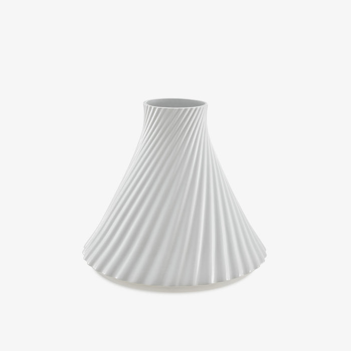 With the subtle choice of matt-finish enamelled porcelain and enlightening purity, he leads us to suggestions for other possible sources of inspiration while the vase remains unfilled : a very attractive Caribbean shell, or more artistically, the motion of the tulle tutu of Degas’ little dancer…