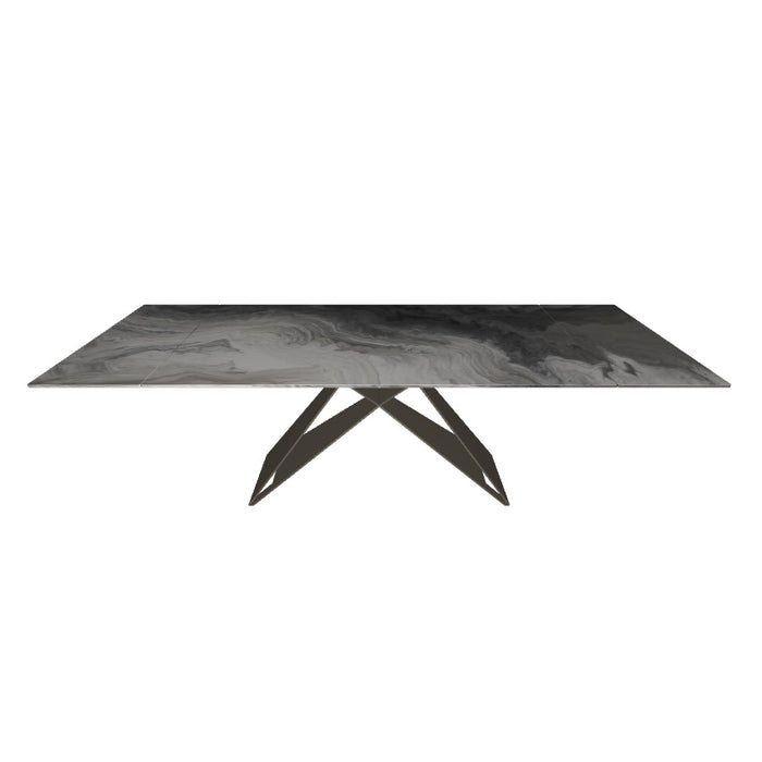 Customization is key to meet many design needs. You may choose between: Premier Crystalart and Premier Crystalart Drive glass tables, decorated with an artistic printing, the latter is an extendable glass table; Premier Keramik with a refined ceramic top, also available in the extendable table version Keramik Drive; Premier Wood and Premier Wood Drive, the first one with irregular edges, the second one with oblique regular edges. Premier design tables pay homage to the finest materials of Italian manufacturing and celebrate conviviality even in limited spaces.