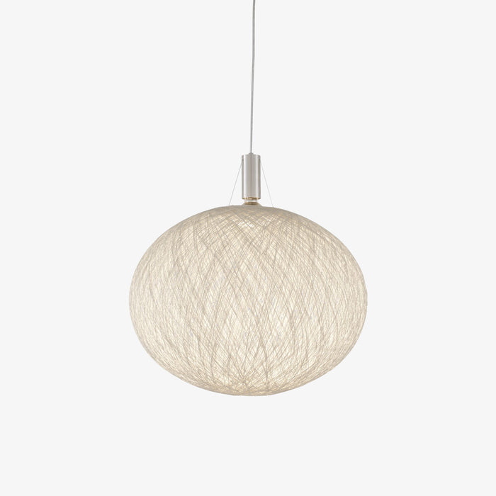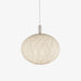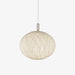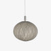 Shade Ø 55 - H 40 cm in woven paper fibre twine, dyed white or grey. 150 cm transparent PVC cable. Socket cover and ceiling fitting (Ø 13 - H 2.5 cm) in a matt varnished brushed nickel finish.