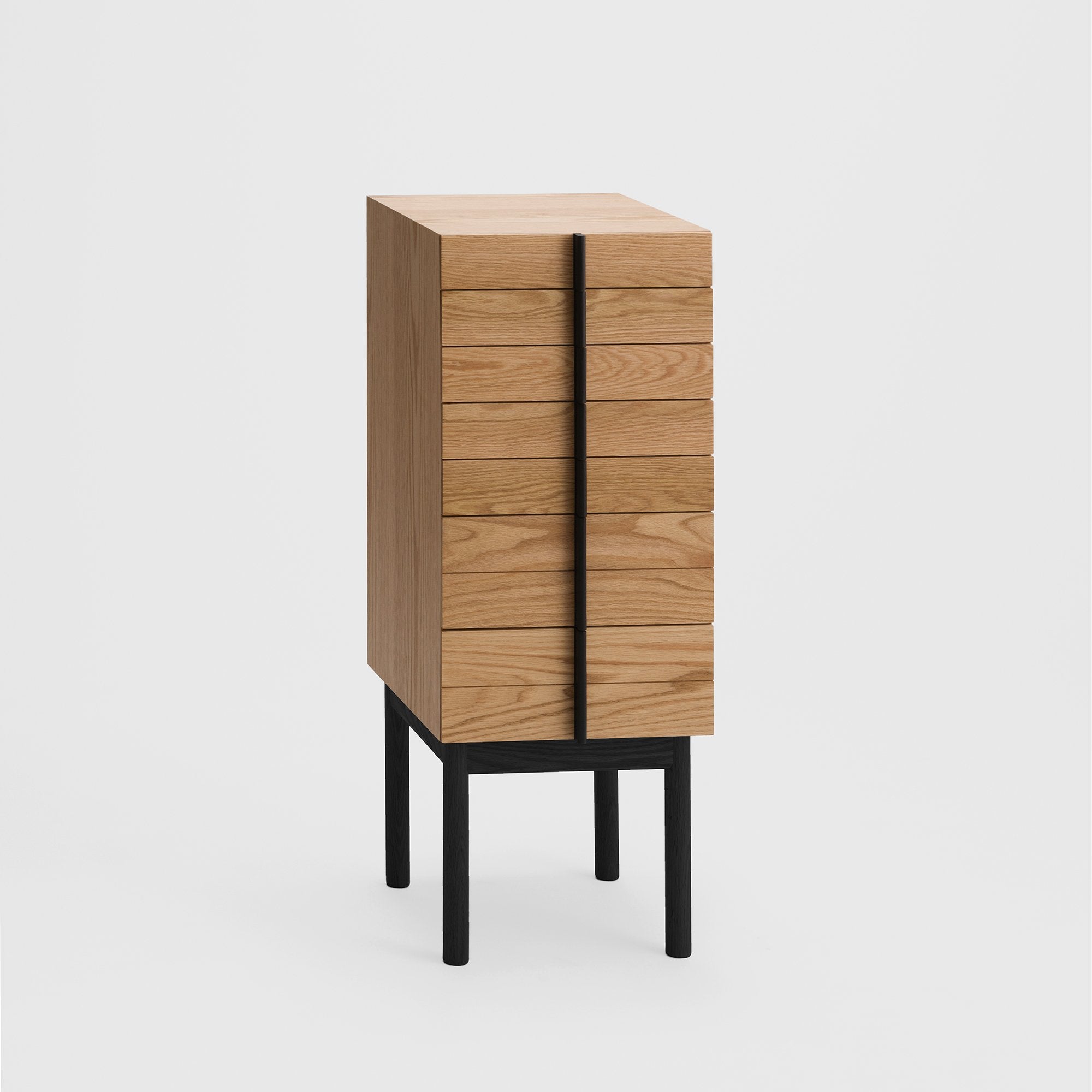 View full detailsThe defining character of this chest is the handle of the drawer, which is attached via a dovetail joint. The handles align vertically when all dra...