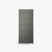 The new shelving unit, at H 189 cm the same height as the storage column, has shelves in a choice of 16 finishes: grey smoked glass, satin white/argile/perle lacquer, plus the 12 'to-order' lacquer colours (beige, brick, chocolate, make-up, moutarde, sage, black, lead, night blue, mahogany brown, copper, platinum grey).