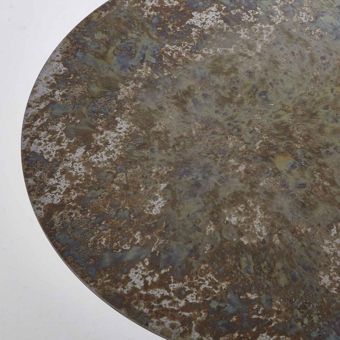 The Oxydation tables combine a simple shape with a complicated texture and are a mix of traditional techniques and highly advanced technologies. As it oxidizes, metal can bring some unexpected results: each table is naturally unique and one will certainly discover a myriad of variations in its oxidized top.