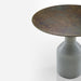 Top in oxidised (acid-treated) steel, finished with transparent varnish. Base in Tuscan stone. Occasional table is made of a Marquina marble base (with water-repellent treatment) and an oxidized golden brass top.