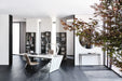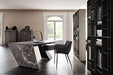 The Nasdaq Keramik modern office desk is a combination of geometrical shapes and materials with a monolith effect. The wooden drawer defies gravity, being laid on the steel leg which incises the space with a powerful diagonal. The top Marmi ceramic finish has a continuous vein, between the top and the side, which enhances the architectural identity of the desk.