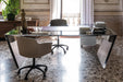 Vega is a splendid office desk designed by Giorgio Cattelan. It can be enhanced with some practical accessories that make it a functional office system, as well as an elegant modern executive desk. The structure can be in stainless steel, or covered in fine wood, while the interior is painted in matt graphite. A leather pad available in different refined colours completes the top making it comfortable and elegant. Vega can be equipped with a second surface, thus becoming an L-shaped desk on two levels. This extension is supported by a practical chest of drawers on wheels, which means you can bring the second surface closer when necessary. The chest of drawers is also a practical option also for the standard version of the Vega modern desk, without the extension. The two practical drawers are enhanced by a front in fine leather.