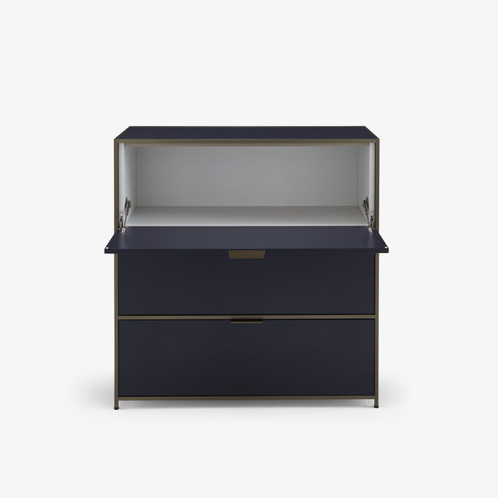 CONCEPTION : although it might be evocative of certain metal modular systems from the office world, Dita clearly distances itself from these in a number of ways: its lacquered panels are in wood rather than sheet metal; its discreet profiled uprights with their sophisticated finish are perfectly placed, cast and not part of the structure; a matching handle which is light and beautifully designed; and its small, slim feet which continue the line of the structure in a very natural way.