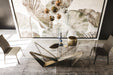 For those who want a table with a strong decorative value, there is also the Skorpio CrystalArt model, with a glass top and artistic print in different colours.The result is a harmonious geometry of light trails and magical origami.