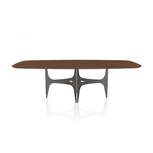 View full detailsFixed table, lacquered metal frame and decorative details. Top in Veneer wood with solid edge, Solid wood and SuperMarble.