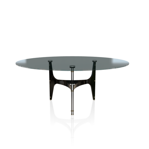 View full detailsFixed round table, lacquered metal frame and decorative details. Standard top in Veneer wood, Glossy glass, matt Velvet matt anti-scratch lacquered...