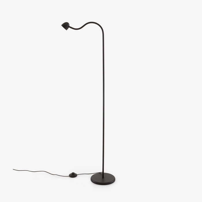 Shade in the shape of a half eggshell Ø 60 mm H 55 mm in repoussé aluminium, adjustable high / low + possible rotation +/- 300°. Possible rotation of the upper part of the stem +/- 225°.
