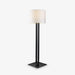 Floor lamp with metal base in Epoxy satin black (RAL 9004) lacquered steel. Square base 45 x 45 cm, thickness 15 mm. Cylindrical shade (Ø 50 H 40 cm) in gris clair-coloured chintz.