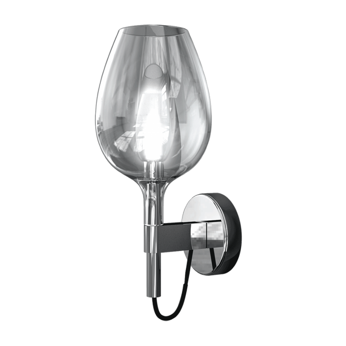 Wall lamp with clear blown glass diffuser and metal structure with chrome finish. Available in different colours.