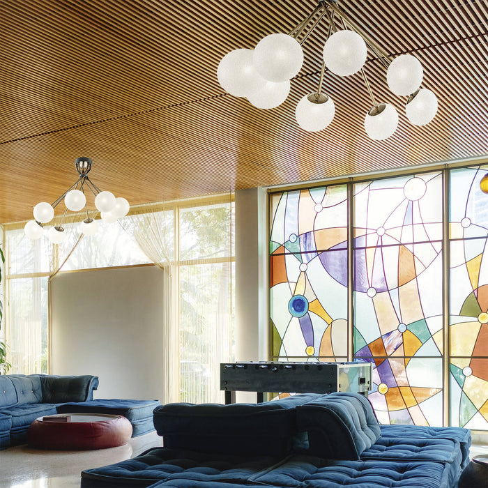 Chandelier lamp in nickel gold and anthracite metal with blown satin glass diffusers. Available in different colours. Incanto Modern Collection.