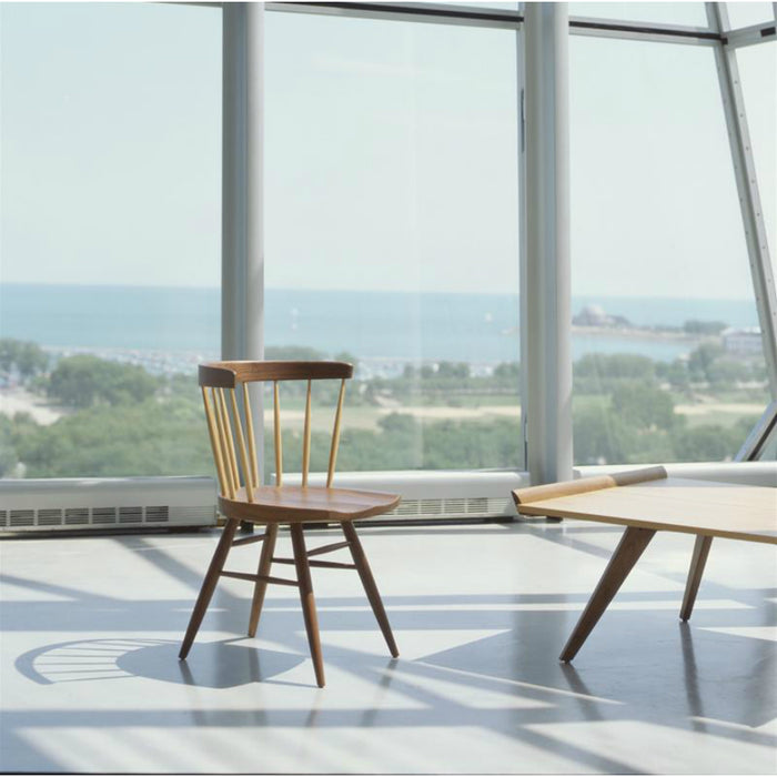 The Straight Chair is George Nakashima's modern interpretation of the traditional Windsor chair. Featuring low-sheen finishes that amplify the natural grain patterns, the Straight Chair showcases Nakashima's sensitivity to nature and his legendary craftsmanship.