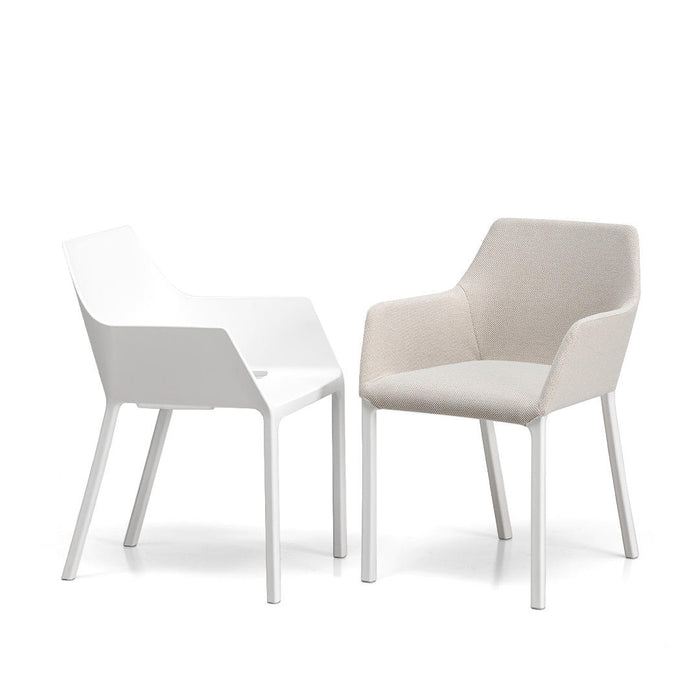 Made of injection-moulded polypropylene reinforced with glass, the Mem chair by Christophe Pillet, with its barely highlighted angles and curves, combines strength with elegance. The two holes in the seat are aesthetic yet also functional details, since they make the chair stackable despite its embracing shape. Mem is also available with a removable soft polyurethane cushion that matches or contrasts with the seat, or with a lumbar cushion upholstered in a choice of fabrics, making the seat even more comfortable.