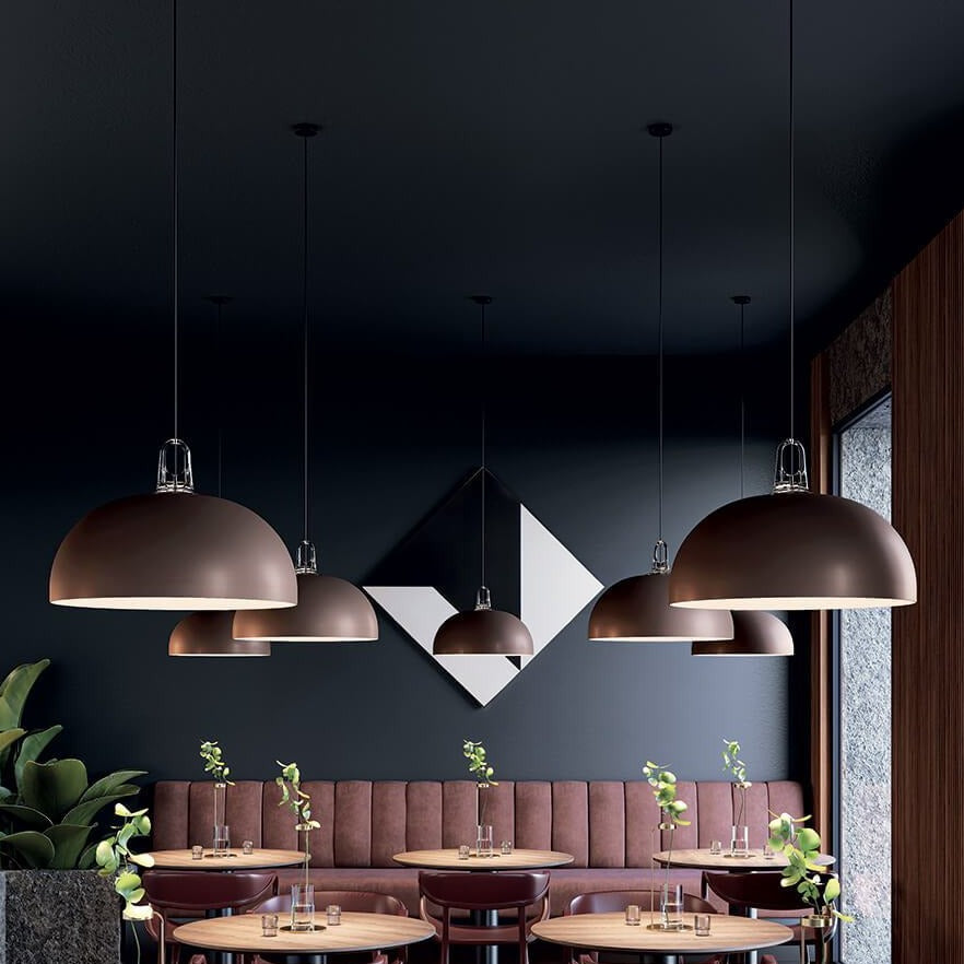 View full detailsJim Dome, pendant light (dome), E27 25W 230V, matted black/honey. Light source not included. Size: ø500x340mm. Pendant length: 4m. Ceiling rose is ...