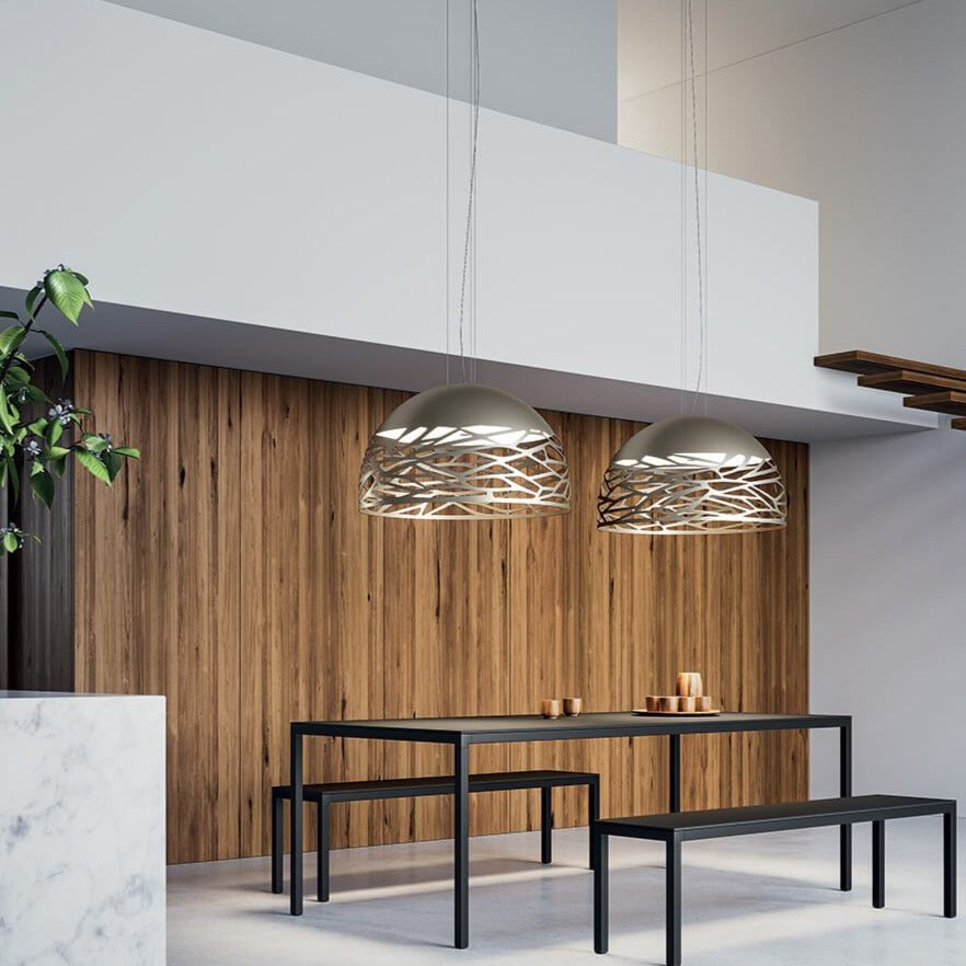View full detailsKelly Small Dome 50, pendant light (dome), E27 3x46W 230V, matted white, Glossy milk white. Size: D500x300mm. Pendant length: 2.2m.