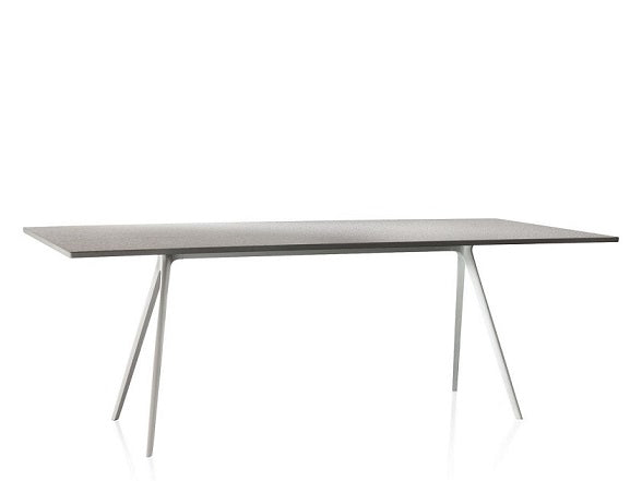 Legs in cast aluminium (polished or painted). Crosspiece in aluminium (polished or painted). Top in transparent or solid painted glass or in MDF.