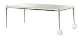 Material: legs in die-cast aluminium, polished or painted. Crosspieces in aluminium, polished or painted. Top in tempered glass (glossy finish), acid-etched (matt finish) or in American walnut. Wheels and feet in rubber. Leaves for extendable version in MDF laminate painted (matt finish).