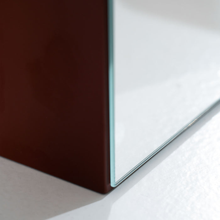 Table mirror in lacquered MDF – finish: rouge oxydé (RAL 3009). lacquered MDF. 2 possible positions – horizontal or vertical.