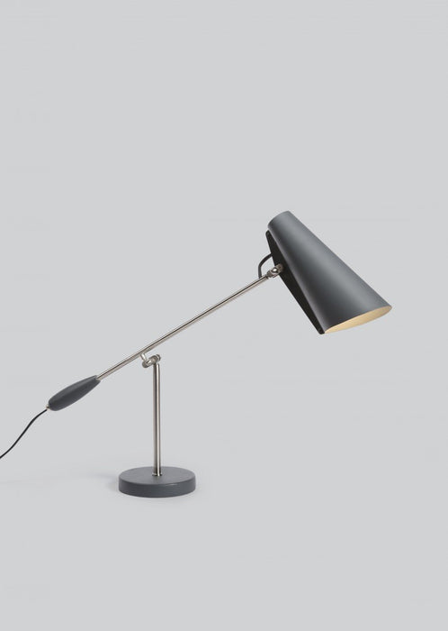 In 2013 Northern Lighting decided to re-launch this design classic, taking care to preserve the original shape and highly functional features that at first made it such a well–loved light. The lamp series is available in off-white or matt grey colour with satin nickel finish and matt black colour with black or brass metal finish. To commemorate the centenary of Dahl’s birth in 1916, a new version of Birdy table is available in the colour Marsala, produced in a numbered series.