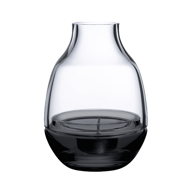 A solid yet dynamic candle holder, its base is weighted for stability, making a perfect container for a candle or potted plant. The top half of the candle holder lifts off for ease of access, resting elegantly on a subtly grooved rim.