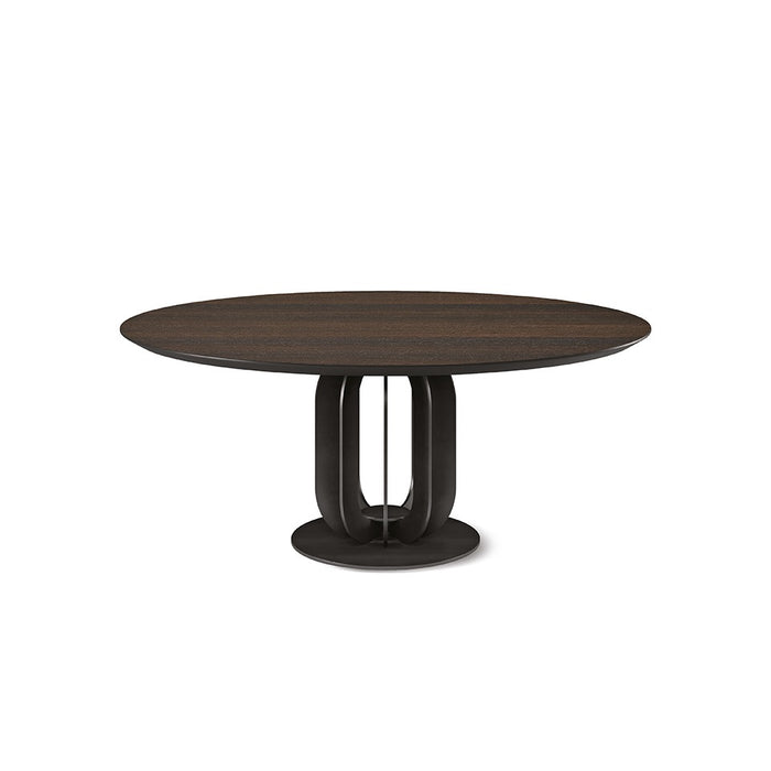 In the Soho Keramik version, the graphic and essential steel base supports a top in refined shades of Marmi ceramic. Even more refined is the Soho Keramik Premium Round model, a round ceramic table with a thick handbrushed edge in Brushed finish. Soho Wood, on the other hand, is a more sober version of this splendid wooden table. Finally, the Soho Ker-Wood Round model is created from an unprecedented combination of precious woods and the original ceramic insert.
