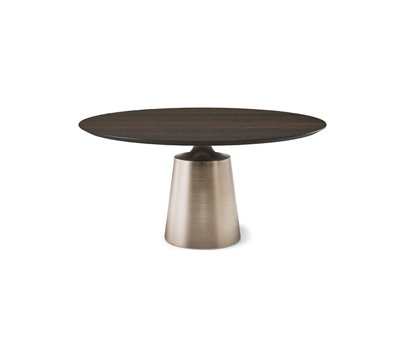 One of the most popular models among Cattelan Italia's round dining tables is the Yoda family, consisting of several variants from which to choose to personalise your design dining room. The base consists of a central truncated cone, the robust appearance is lightened by the metallic finish and by the connection with the narrow, recessed top, as if to resemble a long, elegant neck supporting the table top.