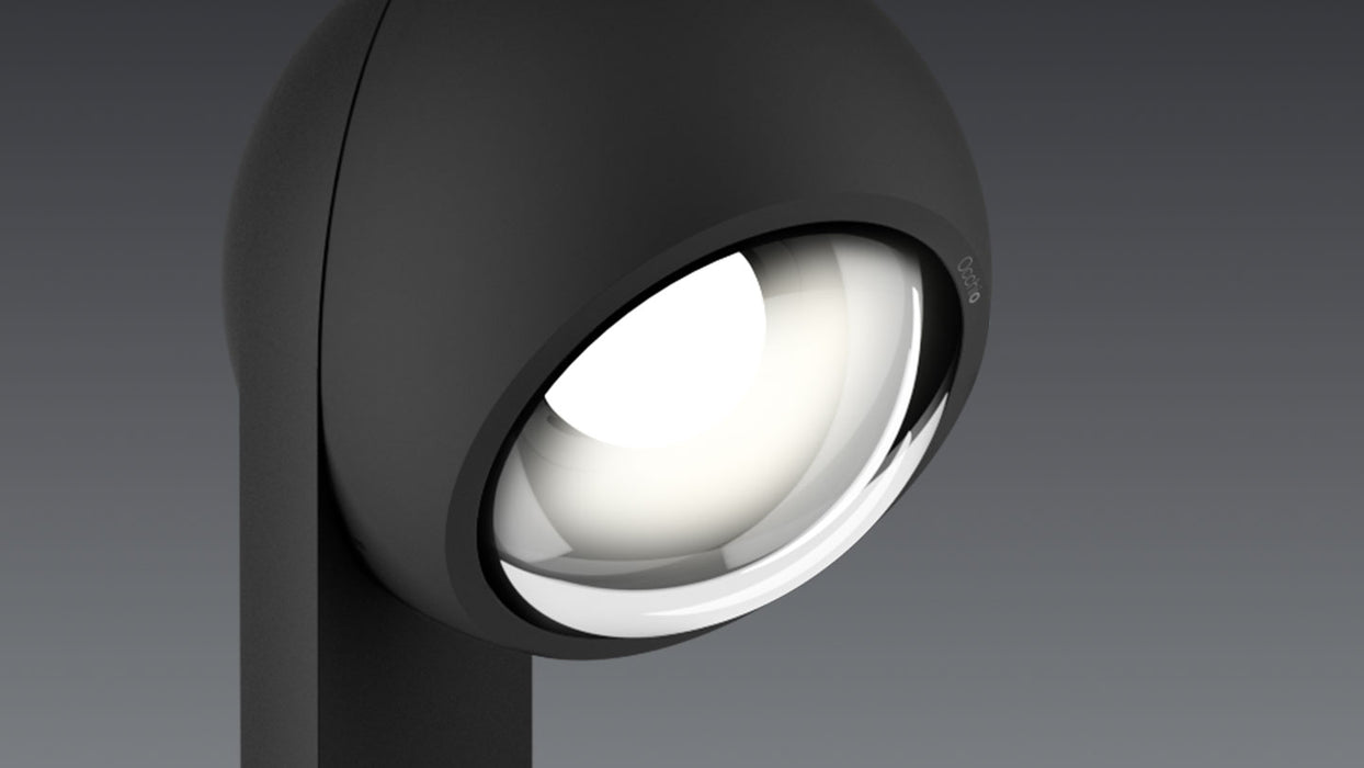 Sito palo – signature Occhio design now available for outdoors. As a bollard luminaire for paths and terraces, Sito palo provides a perfect entrance even before opening the door. Interior lenses ensure an optimal distribution of light and the head is tiltable by 45°. Sito palo can be dimmed with a trailing-edge phase cut dimmer or optionally by Occhio air.