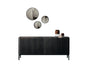 Sideboard with aluminium structure and legs, various finishes. Elements in mdf veneered walnut Canaletto or oak stained wengé. Top available in different materials and finishes. Adjustable in height smoked glass internal shelf.