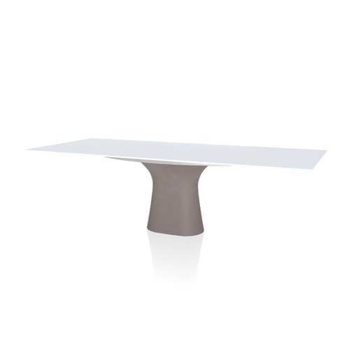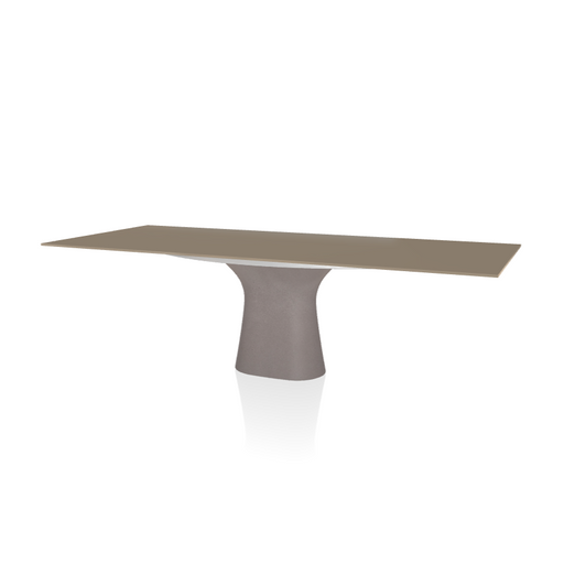 Table with extensions and Concrete base. Top in Glossy glass and Velvet matt anti-scratch lacquered glass.