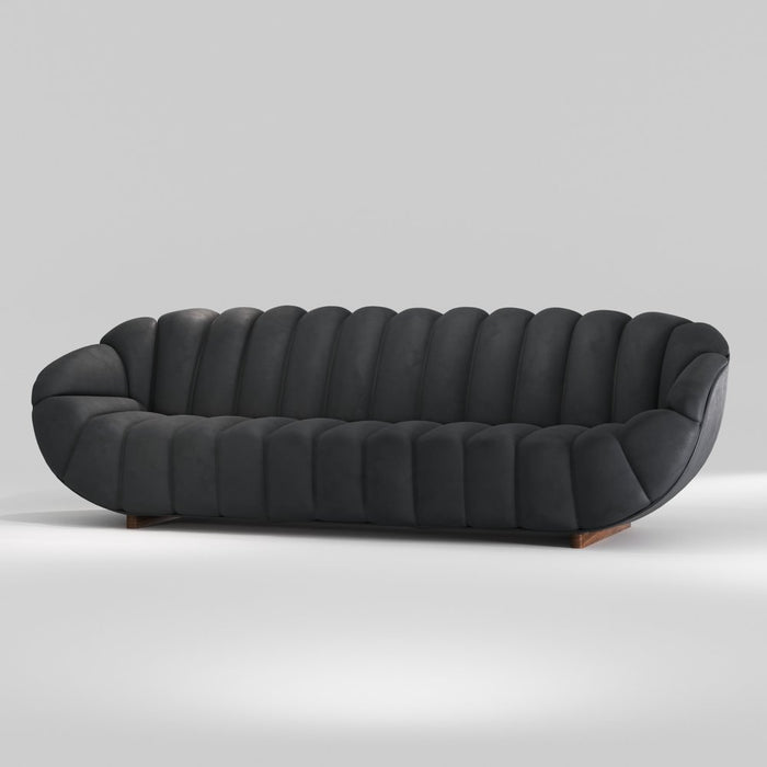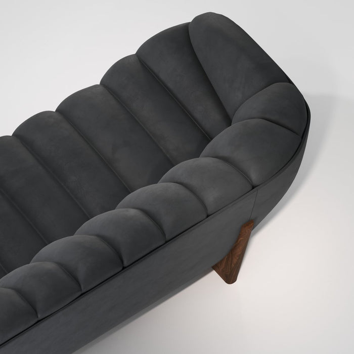 The size can vary between two or three generous places with vertical bands and parallel stitching inspired by the terraces of Douro Valley, supported by two solid wood legs which are set from the back to the front to create the effect of suspension, reminding the boats that named the sofa.