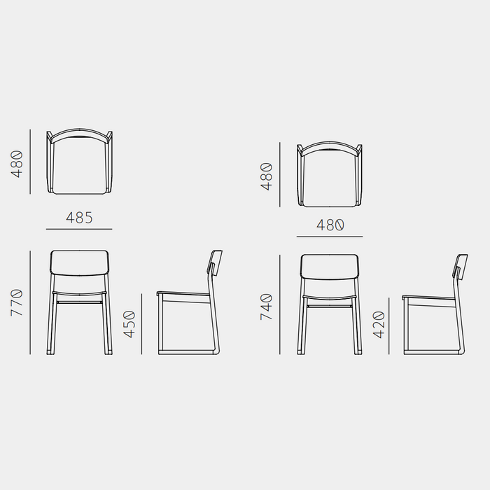 As a simple and stackable chair, Sori Chair is crafted with a sleek bridge connecting the front and back legs that makes it suitable for carpets and tatami floors. By achieving the slimmest proportion for the legs, it appears as a single stroke from the back rest to create its visual lightness and sculptural quality. With details of the chair reminiscent of a Sori (sledge in Japanese), it has been named as ‘Sori Chair’.