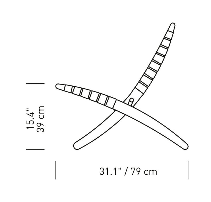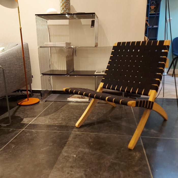 This folding lounge chair is ideal as an extra or permanent fixture. Its light and foldable frame can easily be hung on a wall or placed on a floor stand for convenient storage. Meanwhile, the chair has all the elegance of a sculpture with its natural materials, clean cotton webbing and evident craftsmanship. In short, it beautifully embodies the concept of complex simplicity.