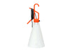 Multipurpose lighting appliance. Hook/handle, which also works as a cable winder, and an injection-moulded opaline conical diffuser made from sustainable polypropylene produced from industrial process waste. Button switch located on the handle. As no glue is used in the assembly process, Mayday is easy to dismantle so that every part can be properly recycled.