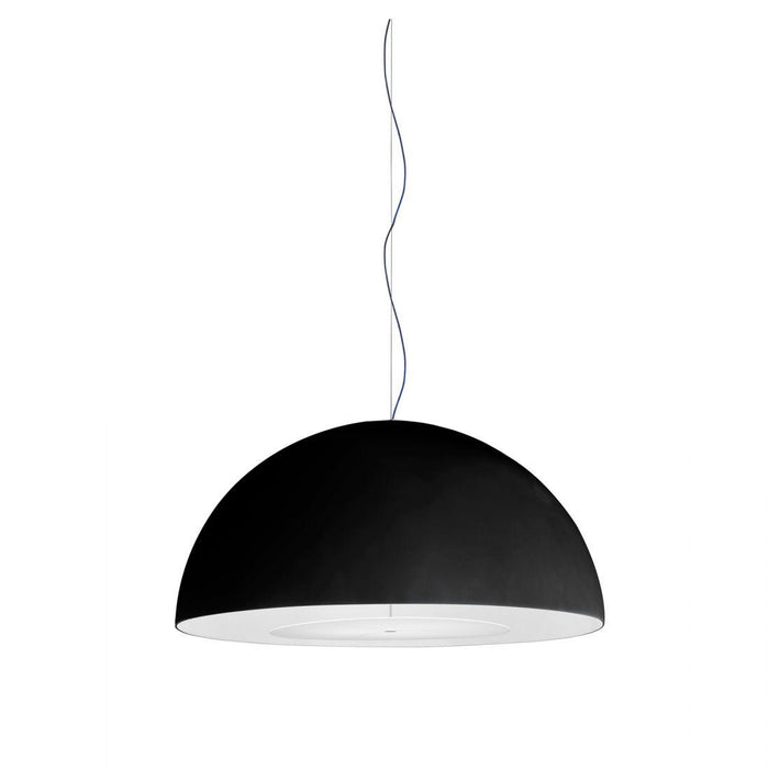 Big-impact suspension lamp, spectacular thanks to its large sizes, available in 120 and 160 centimetre diameters. Diffuser in silver and gold on request. Available separately a bottom disc that covers and hides the light sources.