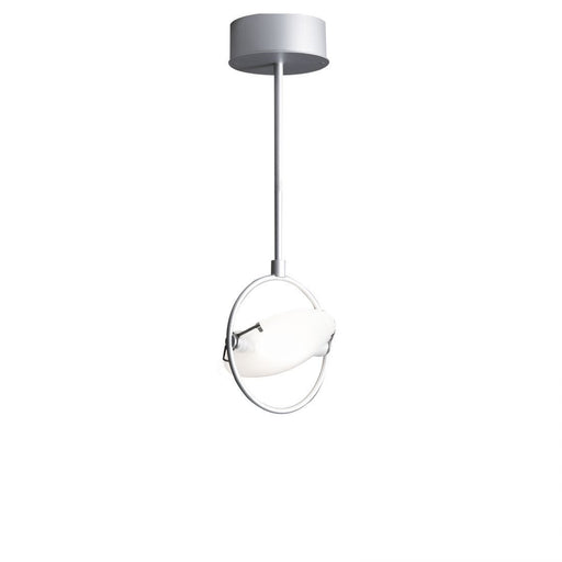 Suspension lamp with diffused and dimmable light. By installing the supplied reflector, the lamp produces direct/indirect directional light. Frame and ceiling connection made of chromed metal. Adjustable satin glass diffuser and reflector made of anodized aluminum. Integrated led.