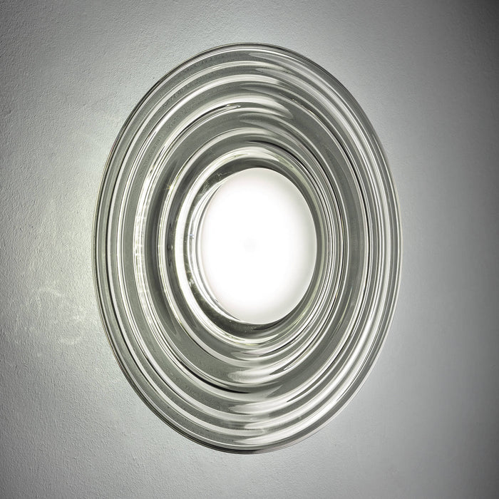 Wall and ceiling lamp in blown glass with satin glass diffuser. Available in different colours. Metal structure with iron grey finish. Modern Catalogue Incanto.