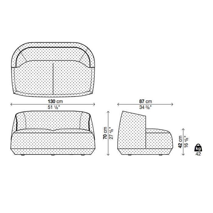 Brioni is a collection of seats inspired by the archipelago in the Adriatic Sea of the same name. Designed by the duo LucidiPevere for outdoor use, and later redesigned in an indoor version, the collection is now enriched with new versions. A lounge, daybed and pouf accompany the twoseater and threeseater chairs and BrioniUp, an advanced version of the armchair and sofa with a high seat and backs, ideal for use in the contract sector. Metal feet, ten centimetres long, are available on request to raise the height of the chair.