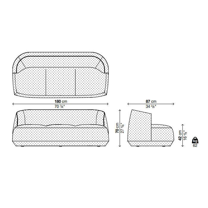 Brioni is a collection of seats inspired by the archipelago in the Adriatic Sea of the same name. Designed by the duo LucidiPevere for outdoor use, and later redesigned in an indoor version, the collection is now enriched with new versions. A lounge, daybed and pouf accompany the twoseater and threeseater chairs and BrioniUp, an advanced version of the armchair and sofa with a high seat and backs, ideal for use in the contract sector. Metal feet, ten centimetres long, are available on request to raise the height of the chair.
