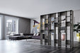 One bookcase, several options. The Latitude modular bookcase consists of a single repeatable module which forms many compositions, making the most out of a room's space and walls. The Latitude bookcase succeeds in emphasizing the height of a column with a vertical composition. With a rectangular configuration it becomes a perfect room divider, a partition bookcase which allow you to see through. With a low horizontal composition it turns out to be an ideal service cabinet leaning against a wall or placed against the back of a sofa or the back of a bed, placed in the center of the room. The metallic finish gives brightness and value to this modern modular bookcase, which is adaptable to any style requirement.
