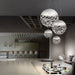 Kelly is available as a large dome-shaped Kelly Dome pendant with a diameter of 50, 60 or 100 cm or as a spherical Kelly Sphere pendant. The Kelly Cluster Sphere with three or seven spheres and is an attractive lighting solution for illuminating tables. The Kelly wall lamp also shows off the wonderful light and shadow effects of the laser cut.