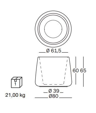 Plant pots or pot-holders, in polyethylene. On wheels.