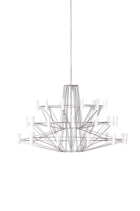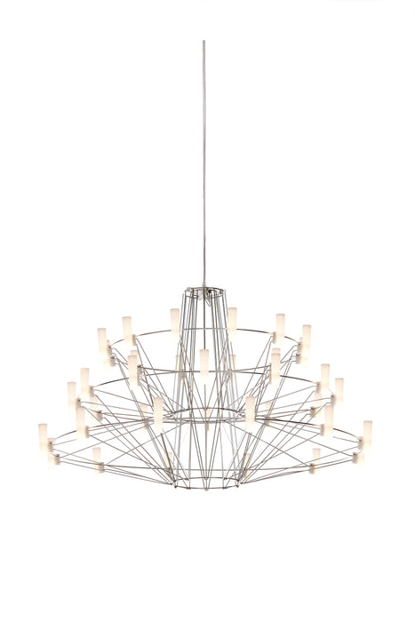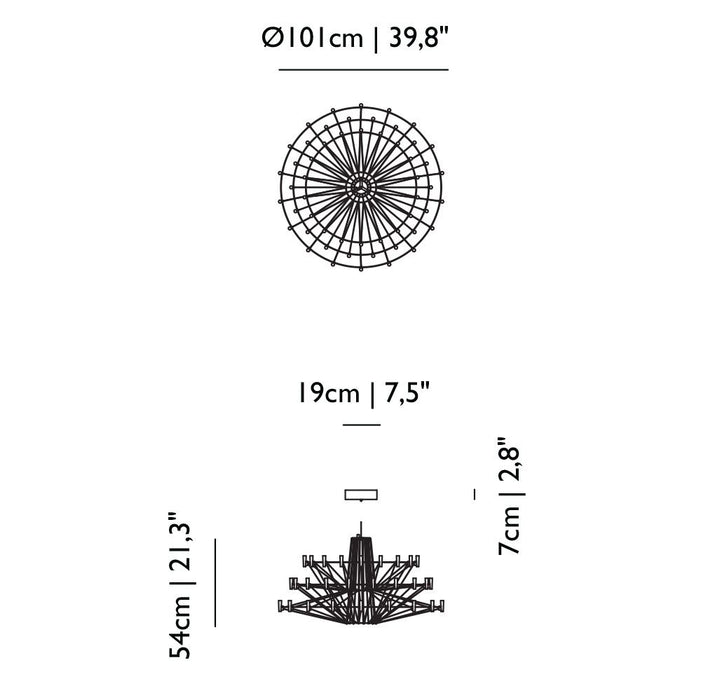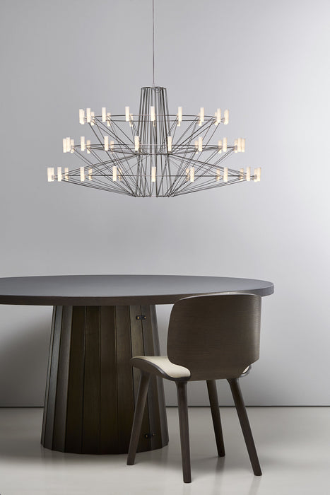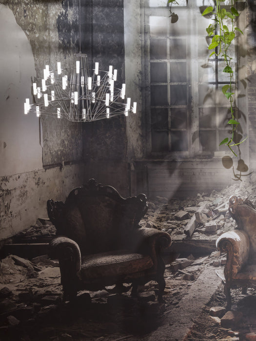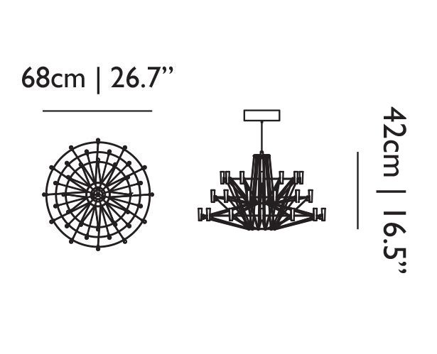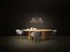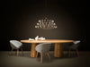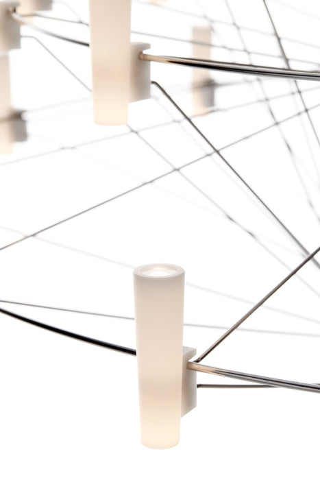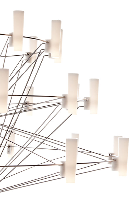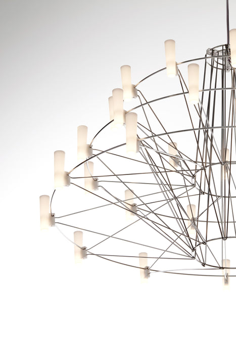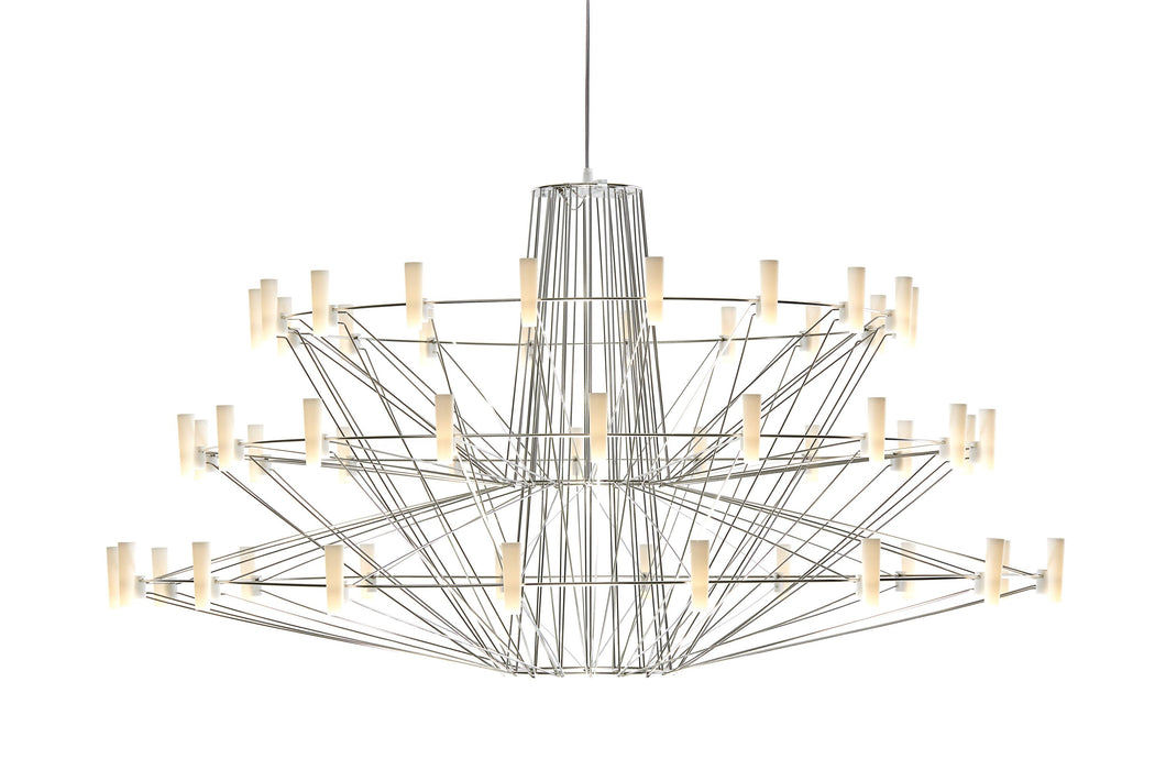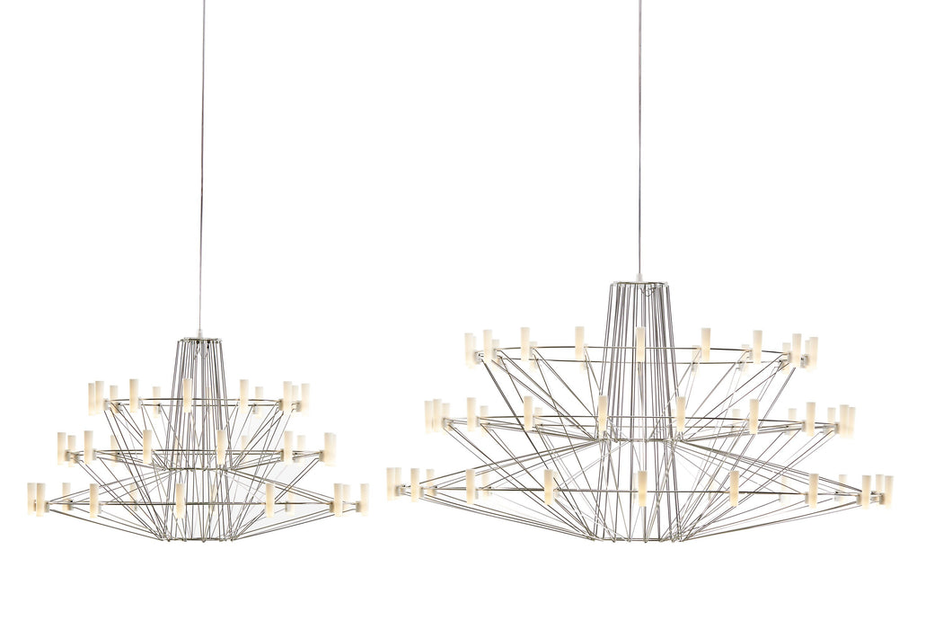 With a graceful sense of wonder, a beautiful mechanical doll appears to magically come to life in the famous ballet Coppelia. In the performance the ballerina traces, with sinuous movements, a delicate after-image in the air, which inspires the fluid motion in the design of Miyake’s Coppelia Suspended chandelier.