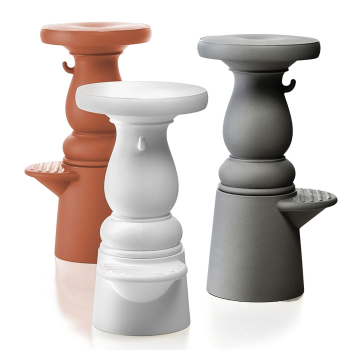 The New Antiques Barstool complements its hard, voluptuous body with the softness of a cozy pillow and the comfort of a relaxing footrest. A vintage blend of antique and new with a hint of flirtatious playfulness!