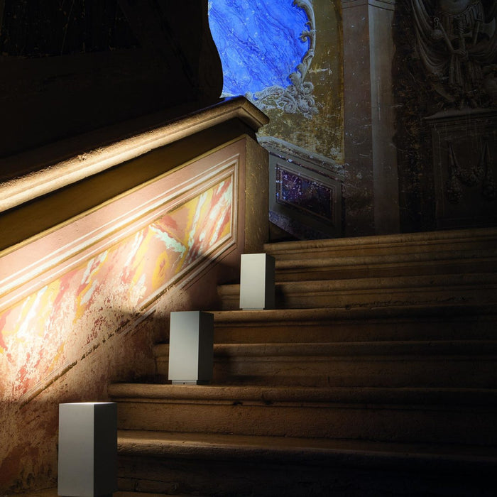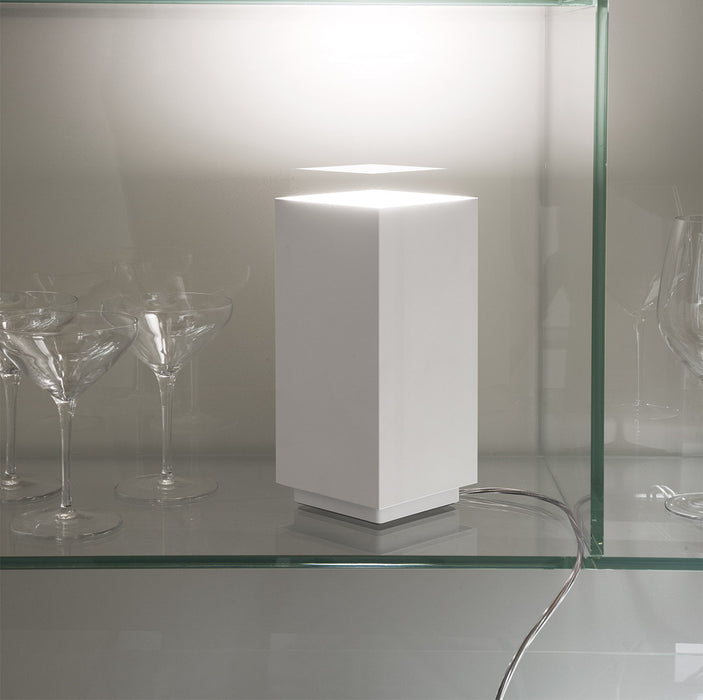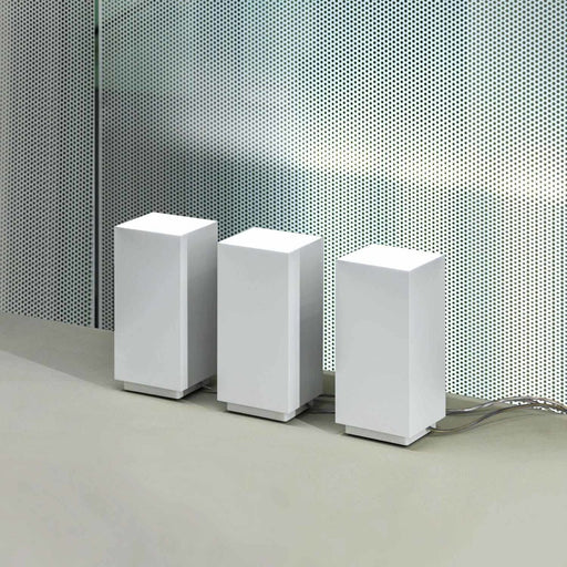 LED floor/table lamp for a diffused indirect light. Powder-coated matt white extruded aluminum. Opal white polycarbonate diffuser. Built-in dimmable power supply. Push dimmer on the cable.