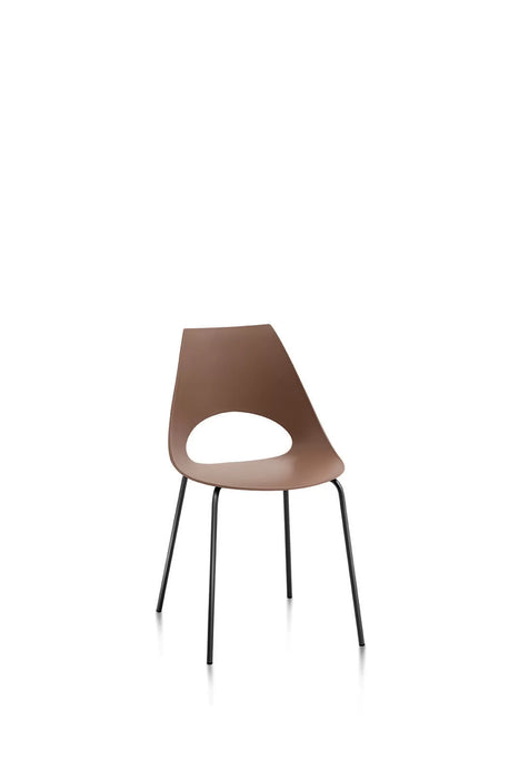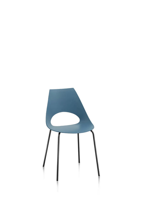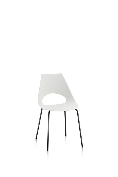 Shark chair by Bontempi with lacquered or chromed steel structure, the enveloping and ergonomic seat is made of polypropoline. The shaping of the backrest is very practical and easy to handle.