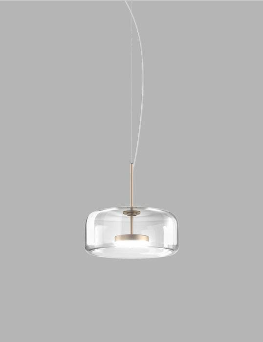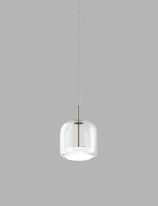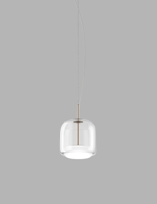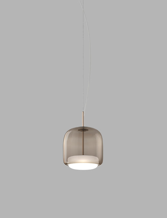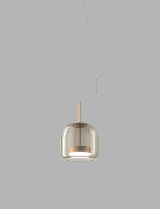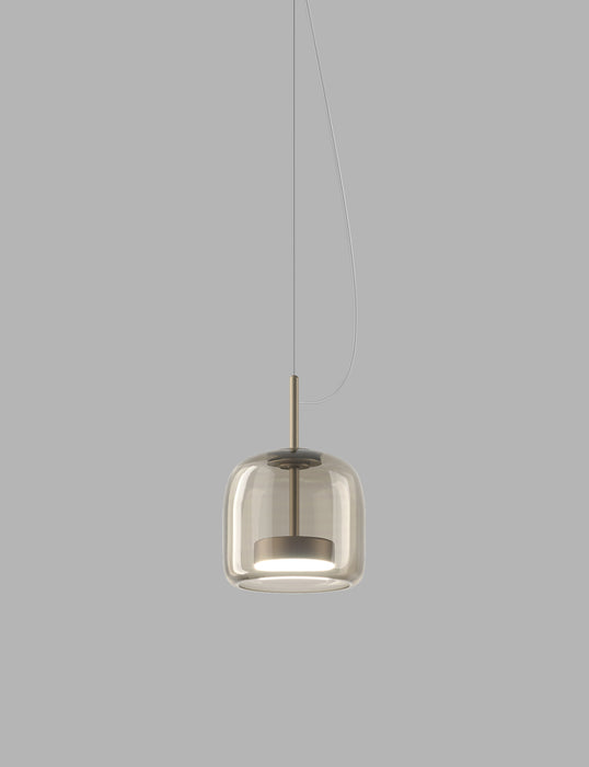 The elegant and delicate look of the blown glass finds a new dimension in Jube. Two glass units placed side by side, so perfectly assembled, that they look like a unique piece. A sinuous lamp, with tone-on-tone colours that give it a precious, vintage mood.